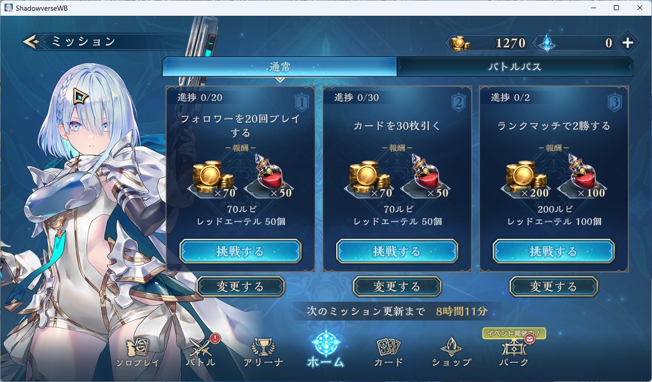 対戦イベントは総じて面倒なのでやらない。シャドバで勝ちに拘るのは非常にストレス。降りられないポーカーやってるのと同じ。