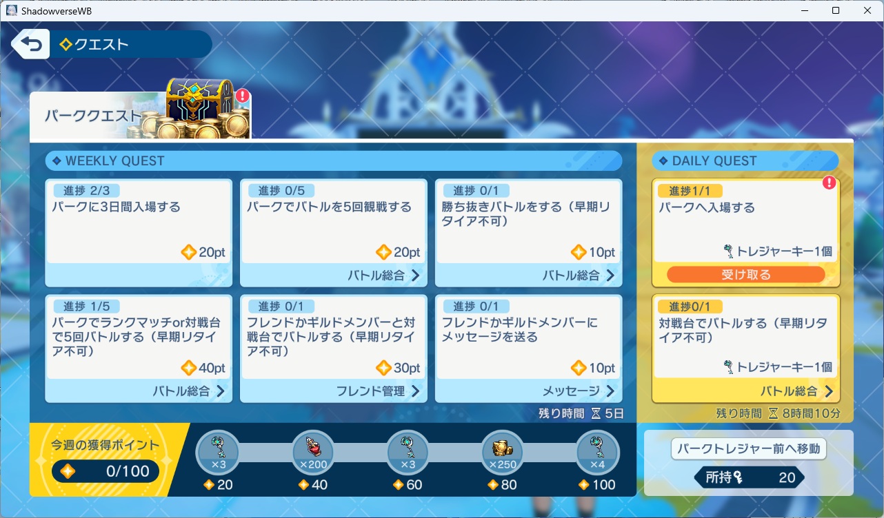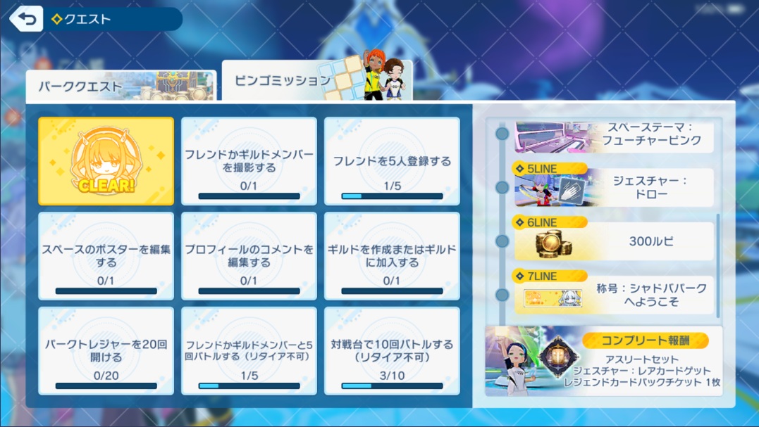 パークで5回バトルする…デイリーのついでに消化可能。