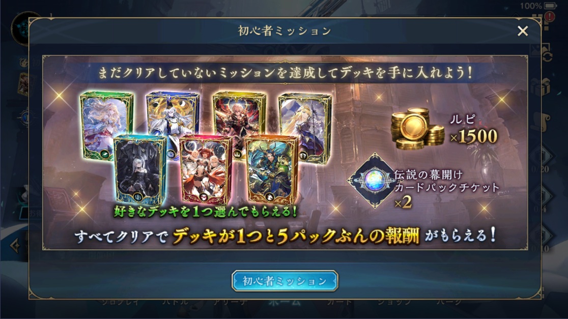 デッキ配布(初心者ミッション)