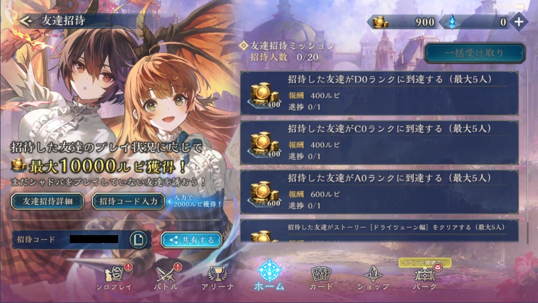 ・初期配布(パック22+ルピ1500)+ソロプレイ(ルピ8650)+友人紹介(ルピ2000)
