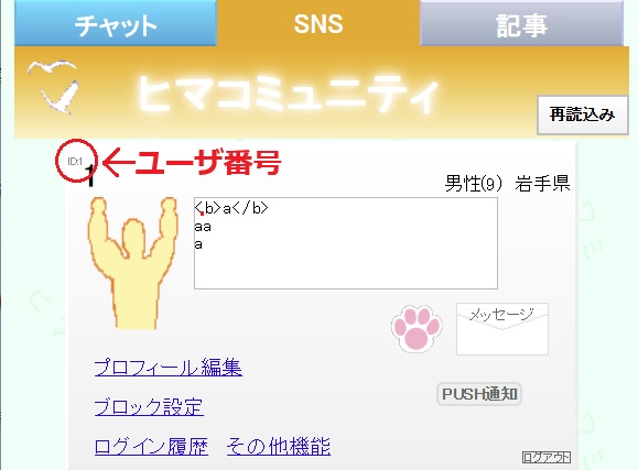 1.ヒマコミュニティにログインしてユーザ番号を確認してください。
