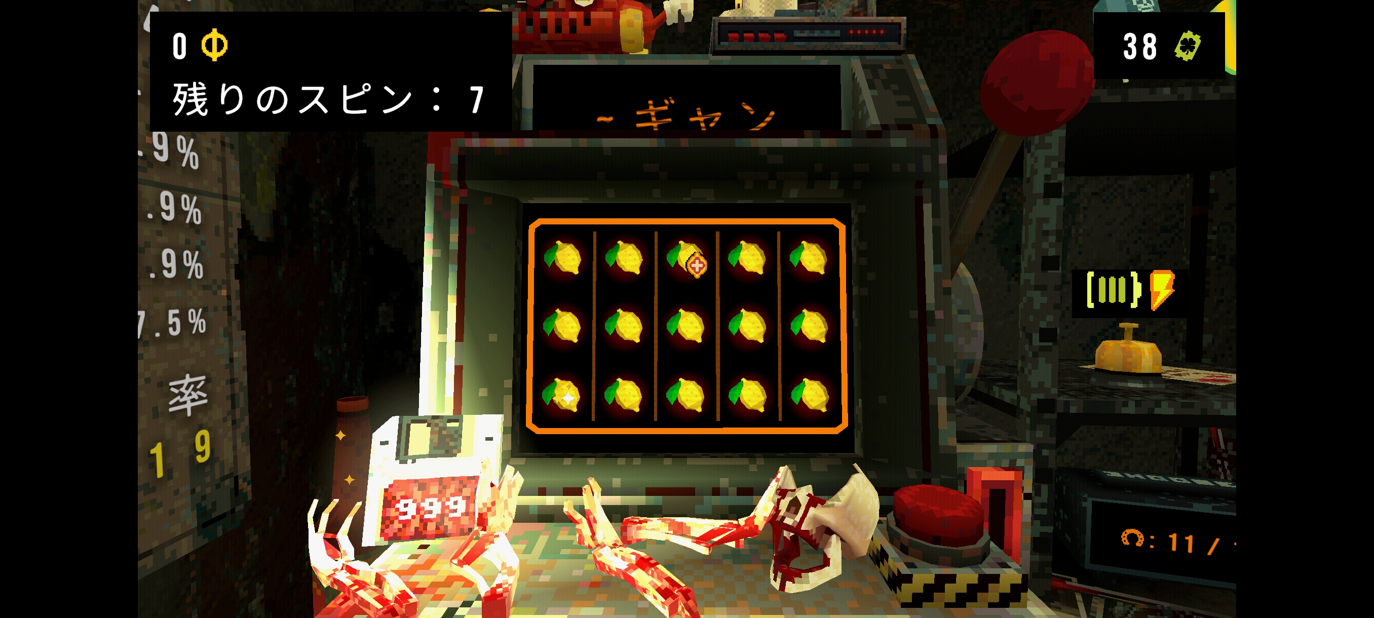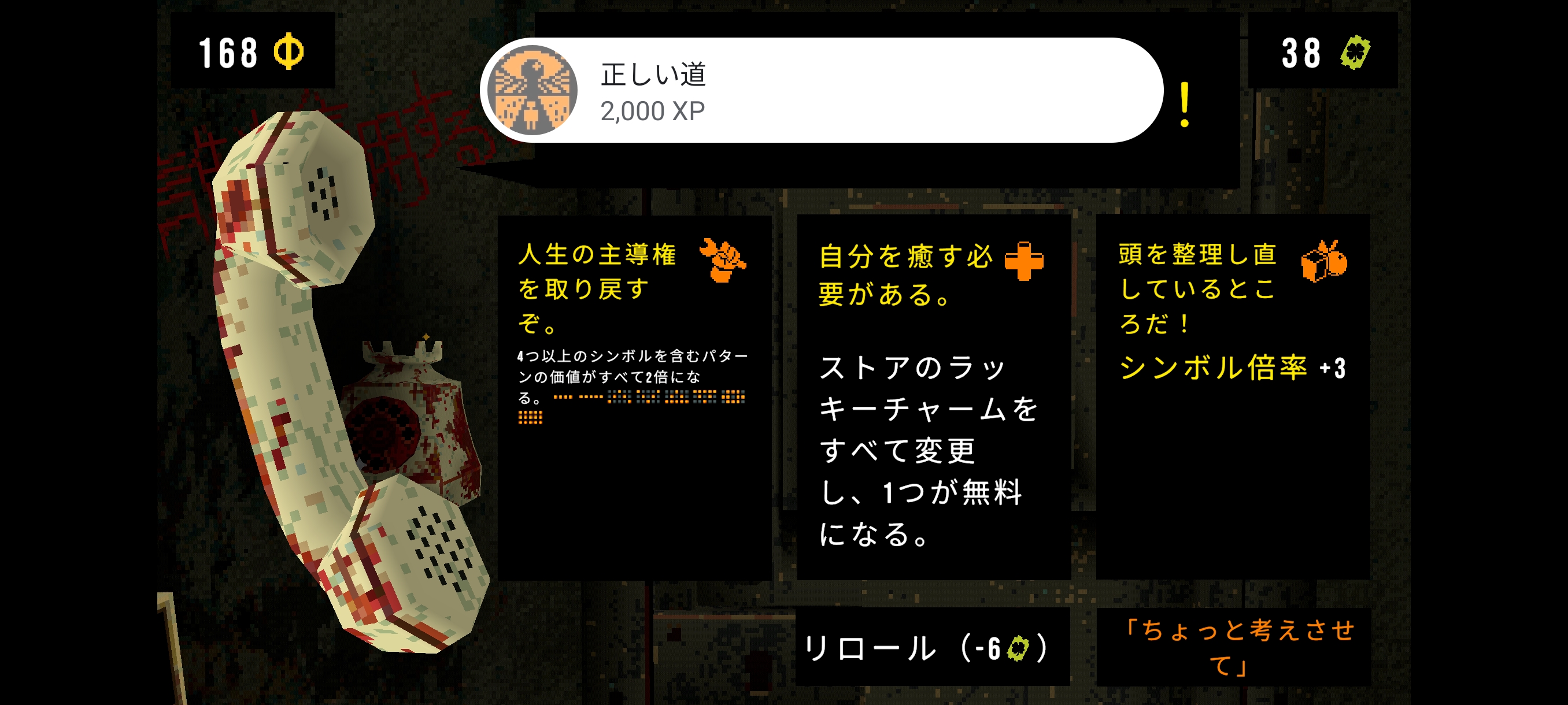 トゥルーエンド条件の白電話と7ビルドでスロットがぶっ壊れた回の1ラウンドの様子