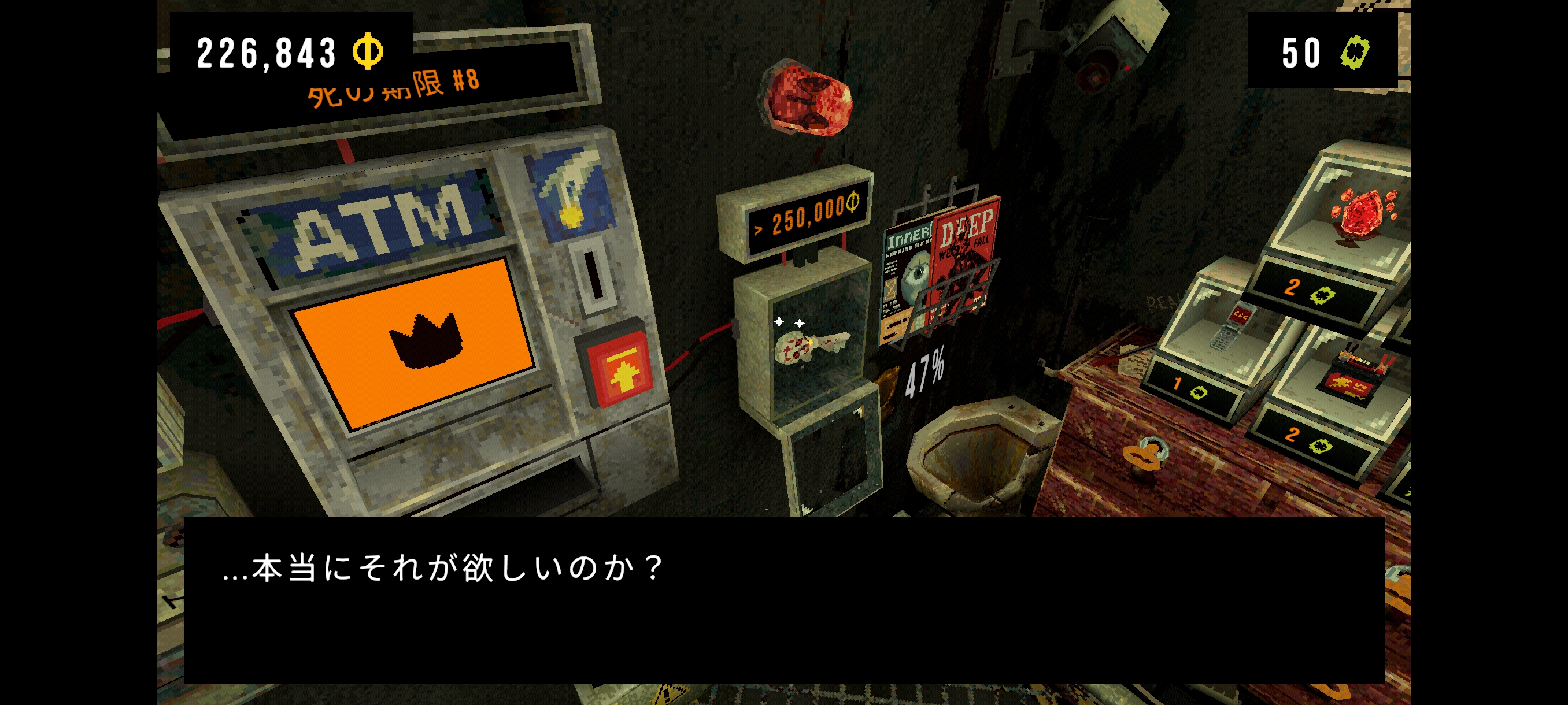 死の期限はクリアすると借金が跳ね上がって新たな死の期限が開始され、これは無限に跳ね上がり、死の期限をクリアするほど指数関数的に上昇してゆく。そこで必要になるのがラッキーチャーム。