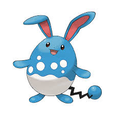 あの腹太鼓兎!もといマリルリ。うさぎっぽい姿や色合いがまさに一緒。でもどう見ても体の形が違うし、何やら額に宝石っぽいのもあるなぁ。これらの特徴はおそらく