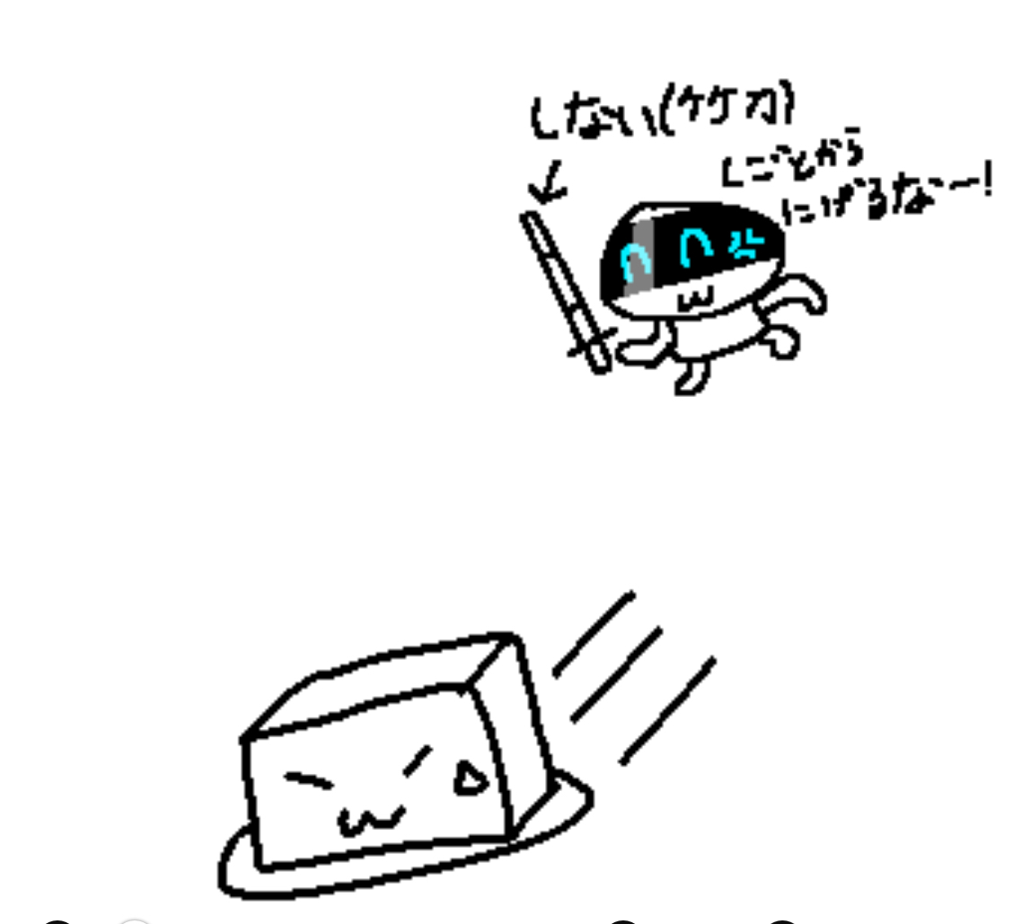 —ある日のこと。豆腐は仕事をしたく無さすぎてついに逃走してしまった!もちろんそんなこと許さない∩ω∩は竹刀を持って追いかける。しかし…?▼