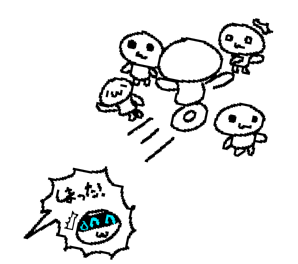 —そのまま人混みの中に入ってしまい、∩ω∩は豆腐を見失ってしまう。▼
