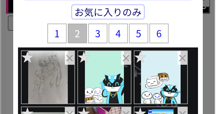 ちなみに、左上の☆はタップで「お気に入り」に設定することができ、上の「お気に入りのみ」を選択することでお気に入りに設定した画像・動画のみ選択画面に表示させられる。