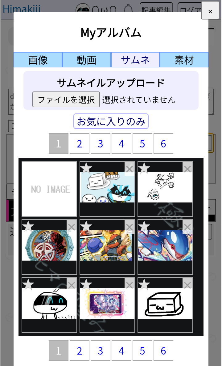 サムネにする画像を選ぶ画面が出てくるので、新しく追加するときは画像・動画をアップロードするのと同じように行えば良い(ただし、動画はサムネにはできない)。尚、画像・動画にはなかった操作が含まれるので注意。