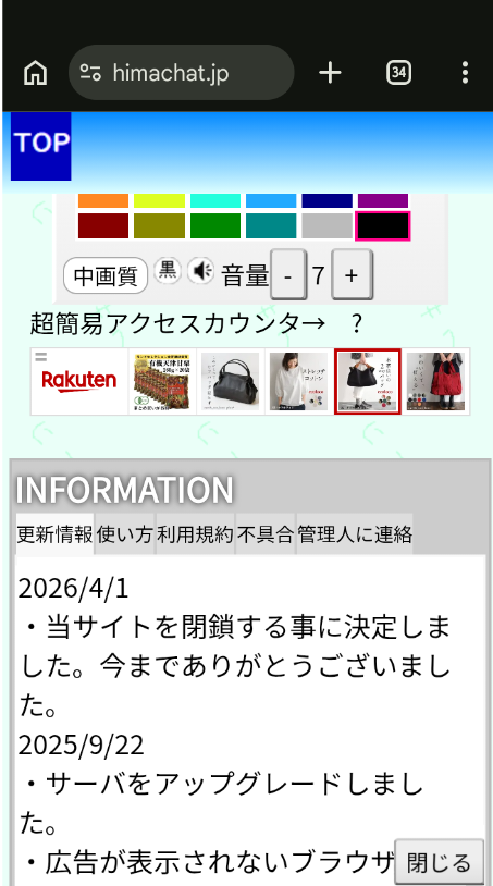 「・当サイトを閉鎖する事に決定しました。今までありがとうございました。」