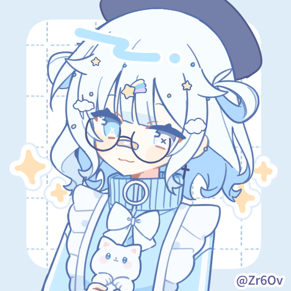 たれ目、丸めがね、ばんそうこう、流れ星と雲のヘアピン、帽子、目のばつ