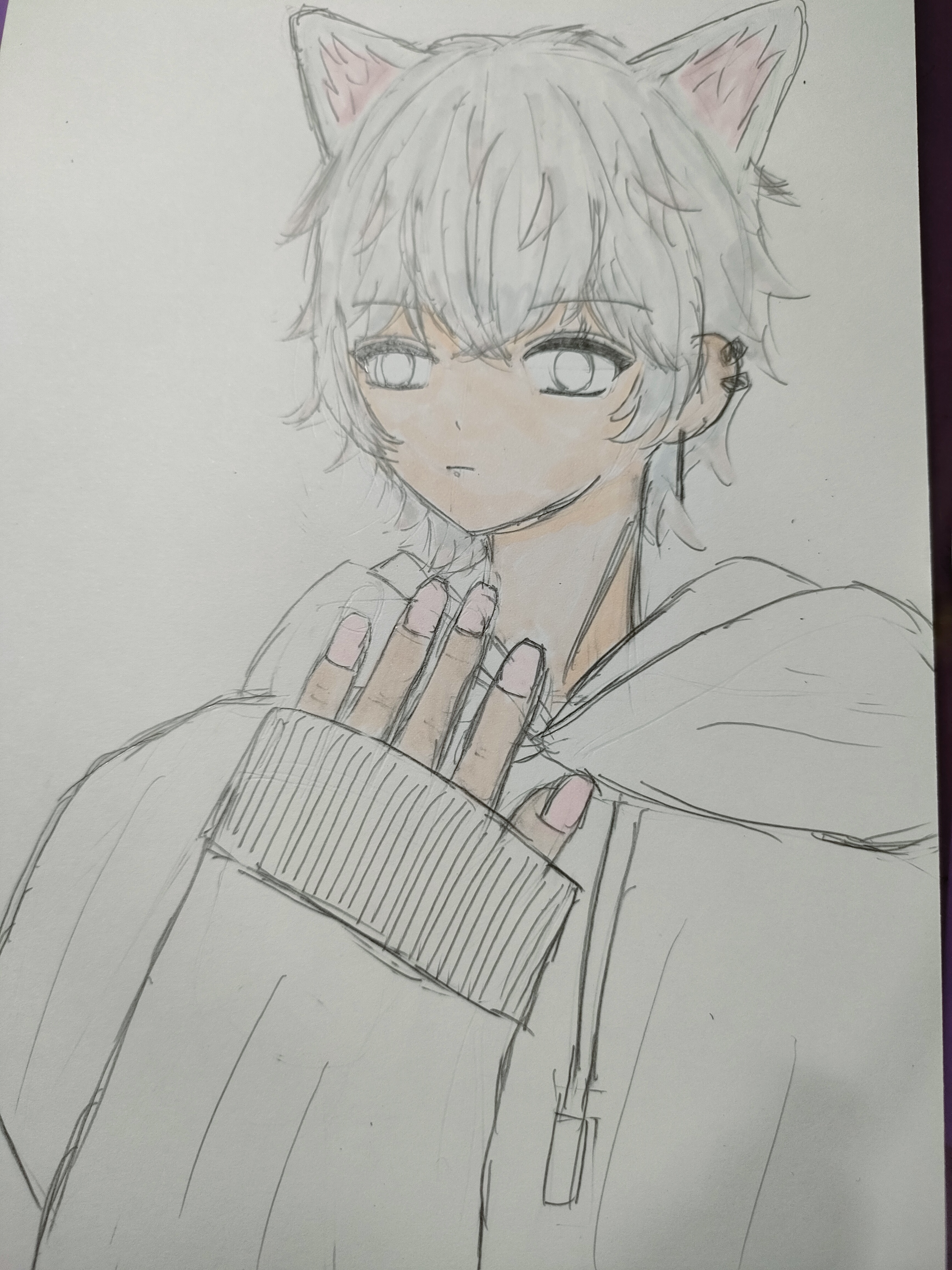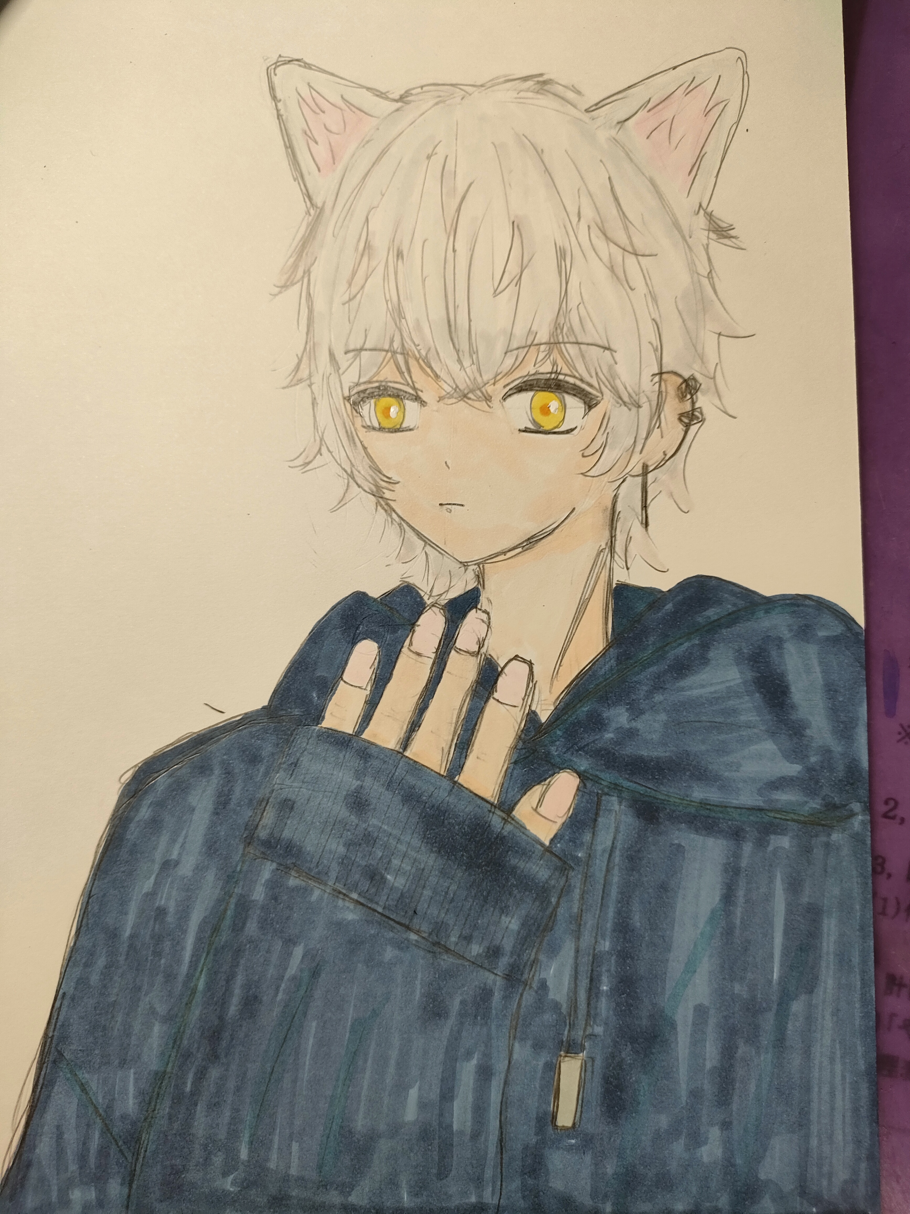 更新日 2025-07-03 ゆー!! ①特徴を決める②アタリを取る③細かいところを描く④服を描く⑤顔を描く⑥髪を描く(シクフォニのみことくんが役に立ってくれました!!!)⑦髪とか頭の形(?)を整え、猫耳とピアスを付ける⑧色塗り(薄い色から順に塗ること!)完成!!!誰か名前決めて! 177view 3点 良い 悪い