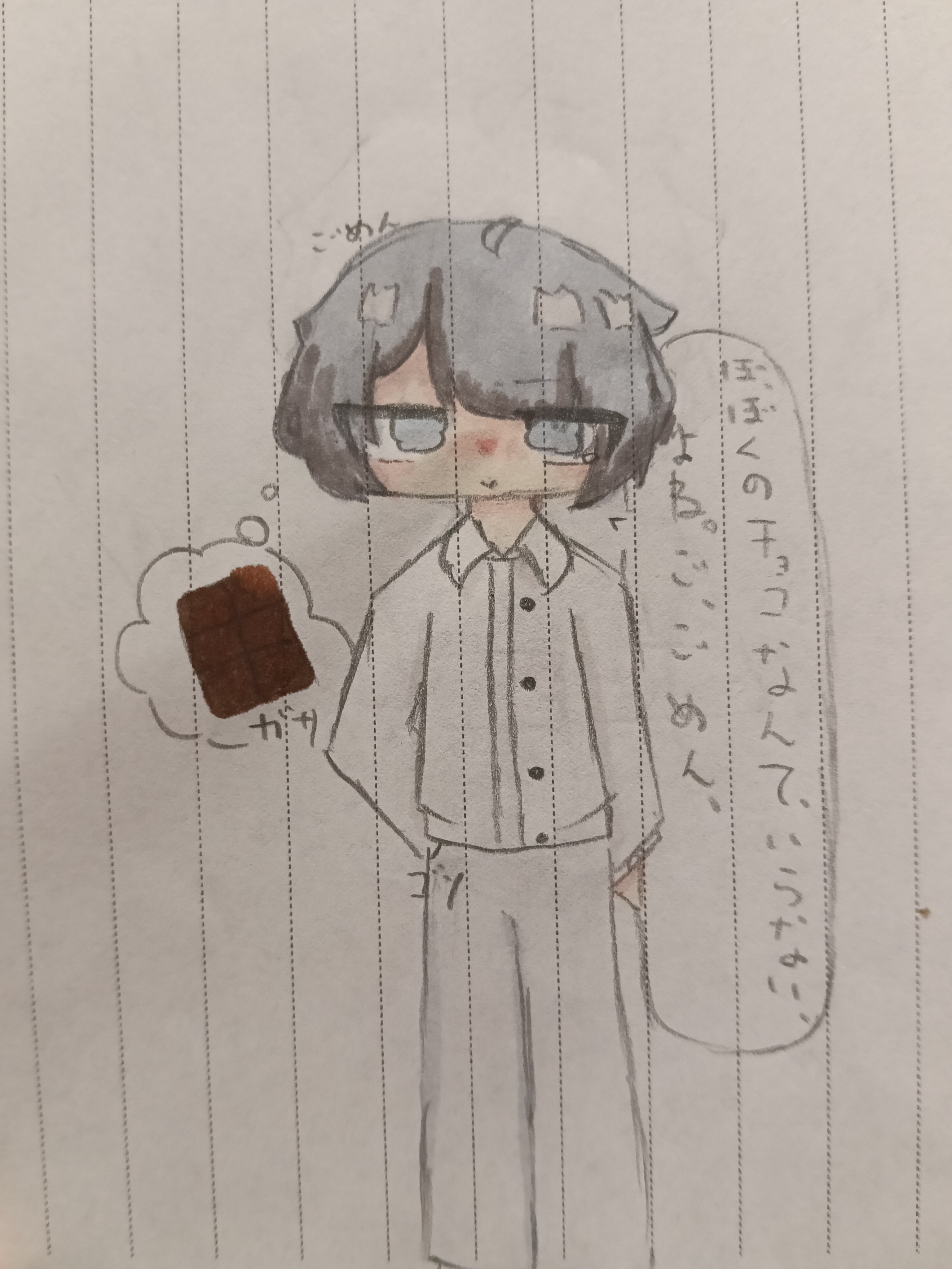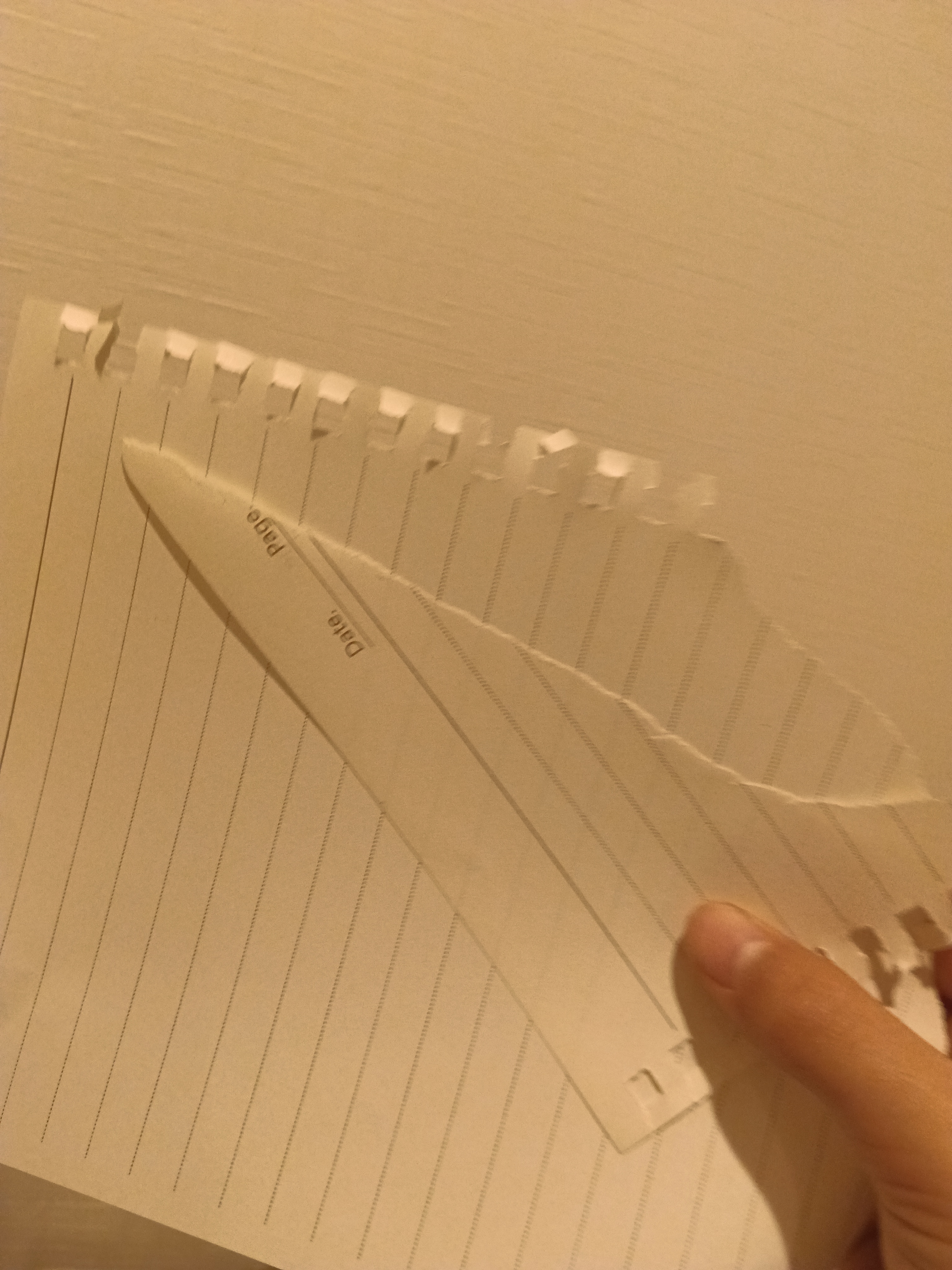 僕、ノートから紙を取って絵を描きはじめるんですけど、その上を取った時の悲劇がこちら↴