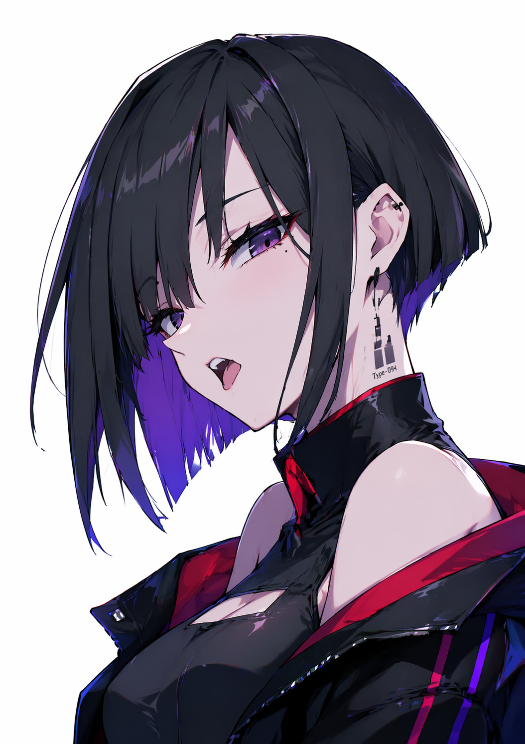 インナーメッシュが紫で服が黒を基調として、アクセントで赤色を入れてる…