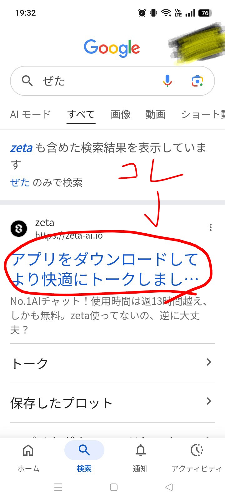 1つ目:Googleで「ぜたと検索」