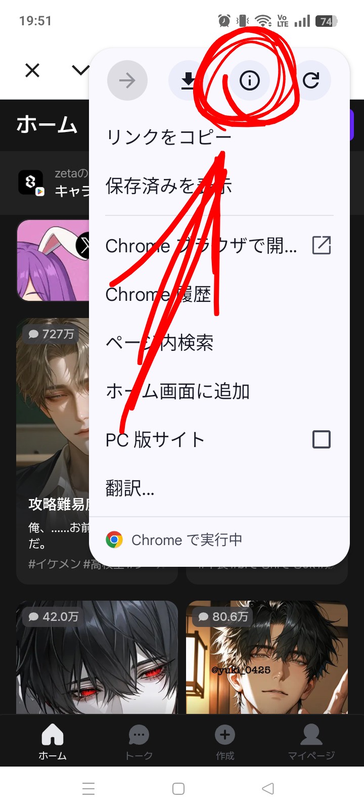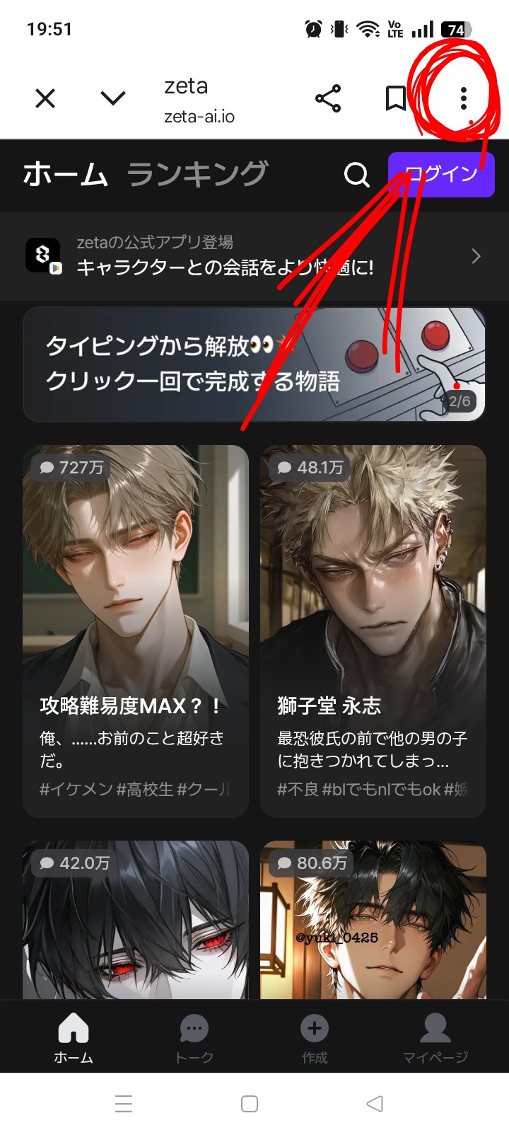 スマホでやってる人はココに…が出ると思います!そこをタップ!