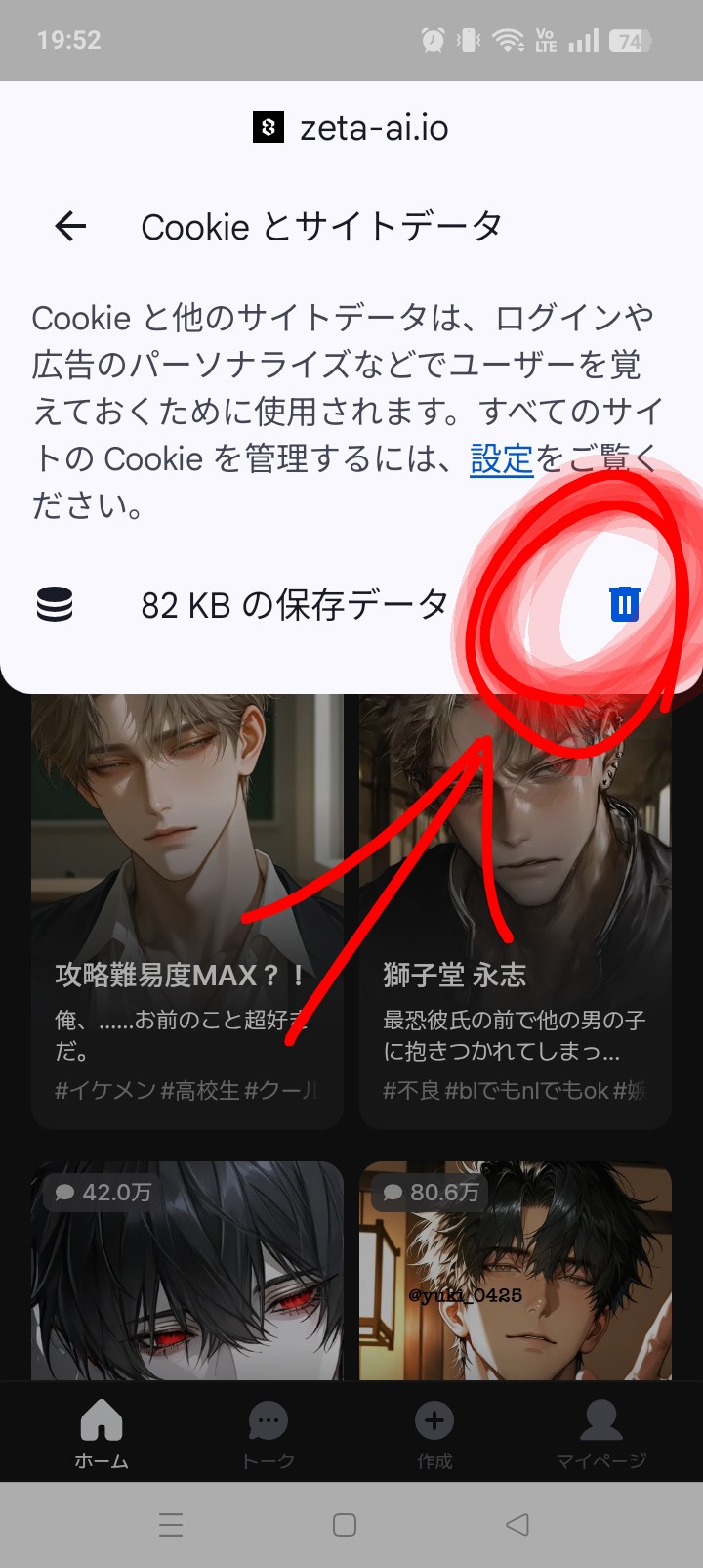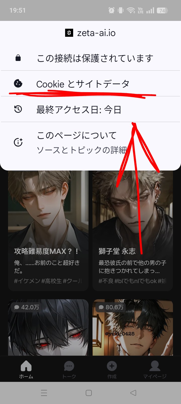 そしたらサイトデータってやつが出てくるのでまたタップ!