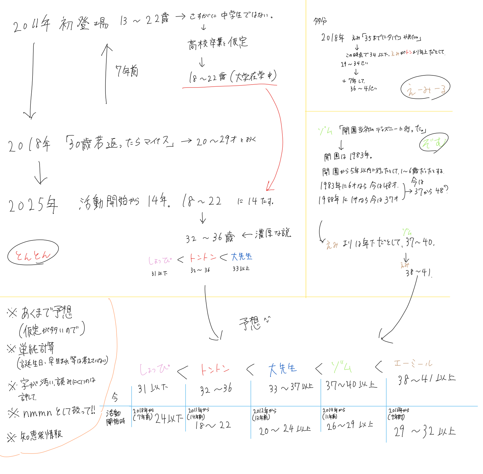 更新日 2025-06-21 観音菩薩 推しの我々だの年齢特定をしてみたく、適当に計算してみました。年齢を公開してる人が全然いなくてめっちゃ大変だった…計算間違えてたら教えて。 45view 0点 良い 悪い