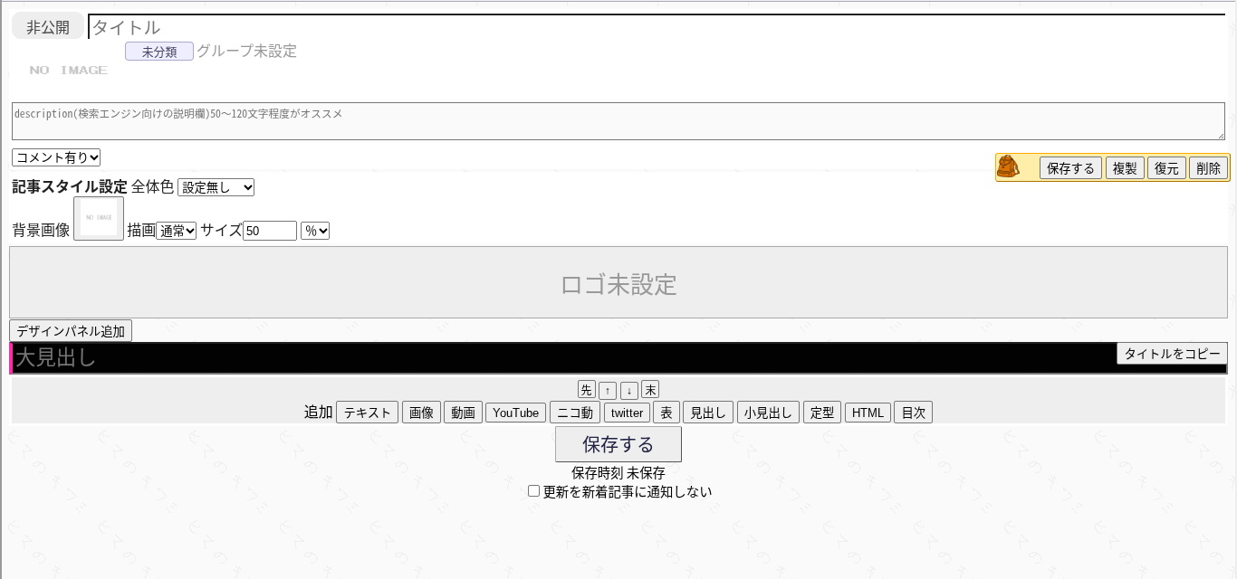記事編集画面の1番上にあるこの欄でディスクリプションとサムネが挿入できます