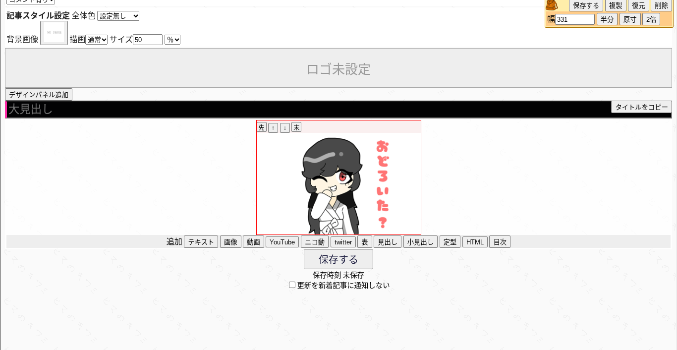 画像の挿入は下の欄にある「画像」「定型」で挿入することができます