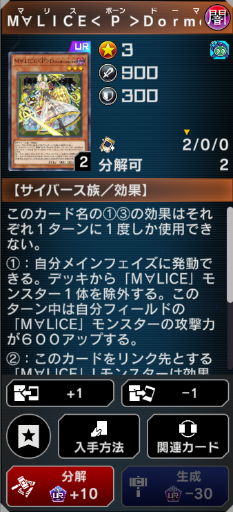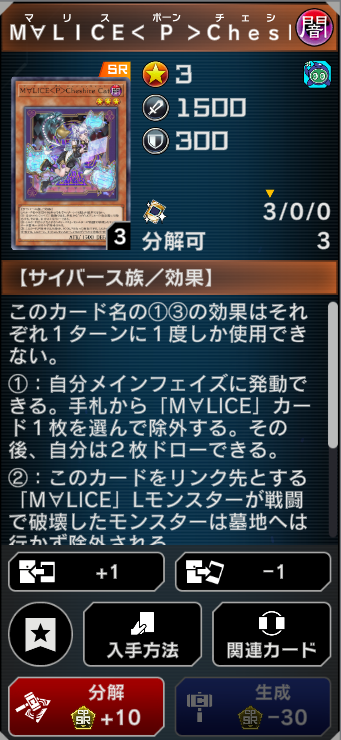 さらに『M∀LICE』Lモンスターも除外された時に発動する効果を持っていて、900のライフコストを払ってそのまま特殊召喚・・・にそれぞれ『デッキからサイバース族1枚除外』『1ドロー』『攻撃力倍化』のオプションが付いちゃってます。基本的にどのオマケ効果も強いので、盤面に応じて出すLモンスターを選べますね。