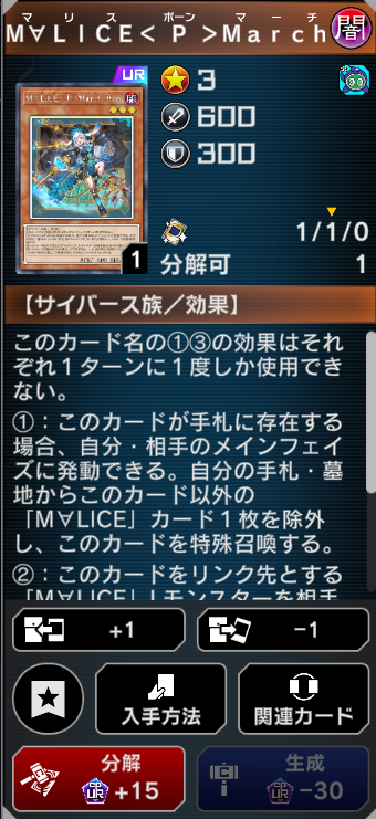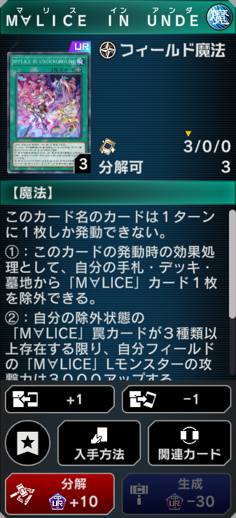 『M∀LICE』はソリティア時にライフコストを要求されるテーマなので、相手だけブン回ってるときは大人しく7000ライフ差をつけてさっさと自爆しましょう。成功するかどうかは別です。