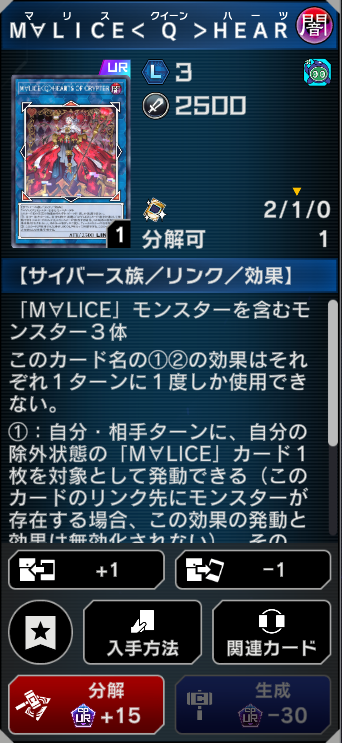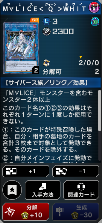 WHITEはさらに強い。自分が3枚『M∀LICE』を除外したら実質タダでリンク召喚してるようなもん。ついでに除去効果持ち。すごいカード。