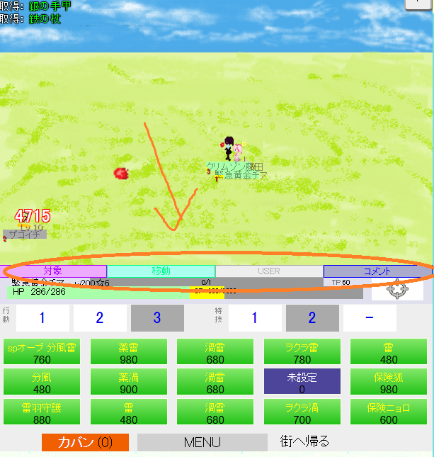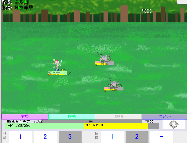 例えば、SP700でスタートするときに「岩投げ+ビッグランス(SP800)」を発動しようとしても足りないのでこれを押せばいい。