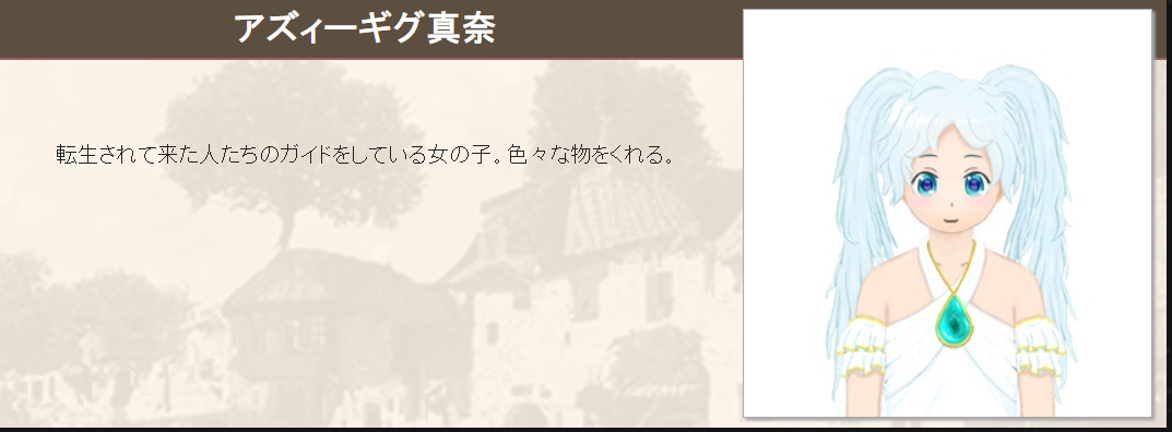 アズィーギグ真奈は元々HIMACHATQUESTのキャラクターであり、マグナム中野と知り合って星空転生アナザースカイの案内役を任されたのだろう。