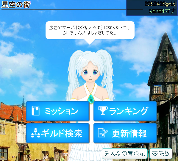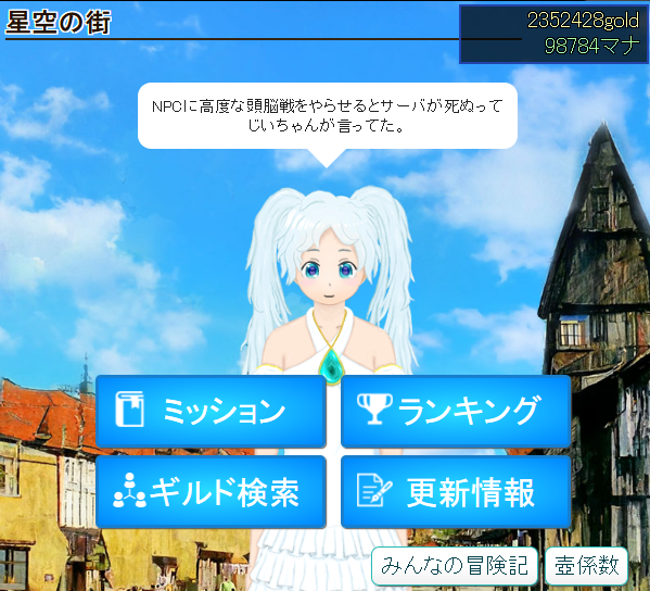 アカウントを作成してゲームにログインすると、基本的に「星空の街」というホーム画面に遷移する。