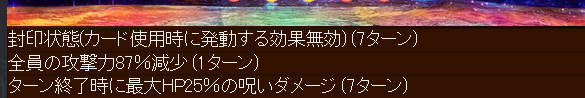 それは圧倒的なデバフである。攻撃力減少、それ以外でも毒ダメージ、呪いダメージ、カード効果の封印、コールバック制限、マナ強奪など様々な状態異常を使い分けて戦ってくる。